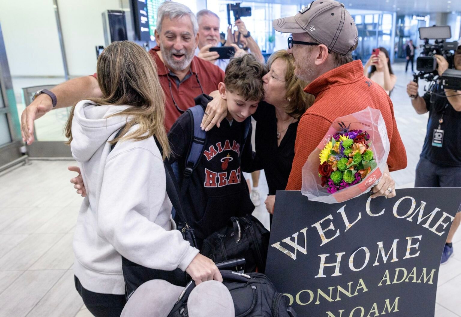 Entre ellos estaba la joven estudiante Rachel Ghermiziam, quien había viajado a Israel con sus amigas y fue la primera en aparecer por la puerta de llegadas del aeropuerto, donde familiares y amigos se congregaban emocionados con globos y pancartas que decían “Welcome back home” (bienvenidos de vuelta a casa).