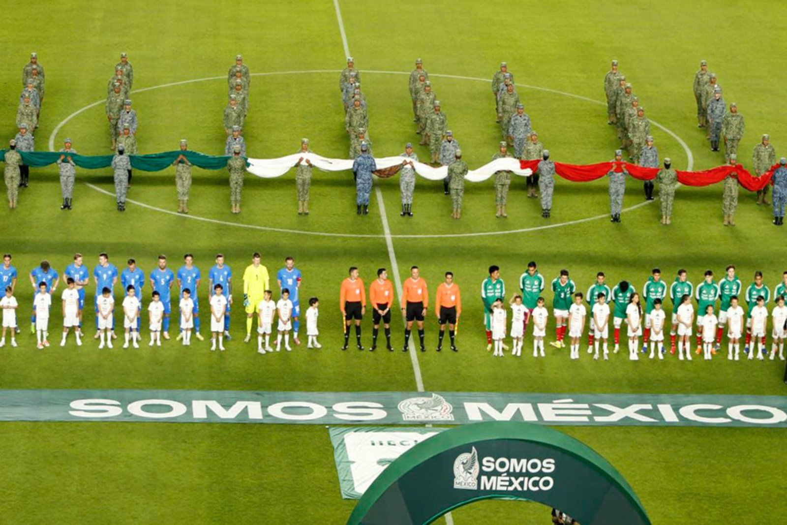 Previo al partido entre las Selecciones de México e Islandia, realizado en el Estadio Corregidora de Queretaro, se rindió un emotivo homenaje a los miembros de las Fuerzas Armadas de México.